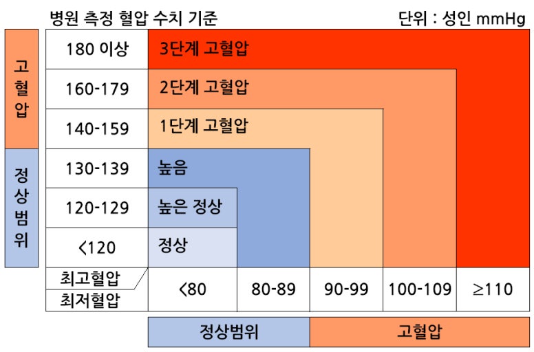 | 고혈압 전단계 | 120~139 | 80~89 |