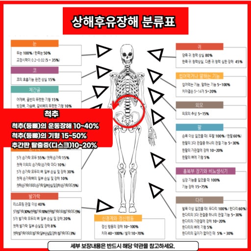 - 예: 손가락 절단, 시력 상실, 청력 저하, 척추 손상 등