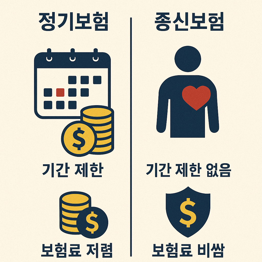 이 두 상품은 겉으로 보기에는 모두 '사망 시 보험금을 지급'하는 기능이 같지만, 보장 기간, 보험료 구조, 활용 목적 측면에서 본질적으로 큰 차이가 있습니다.